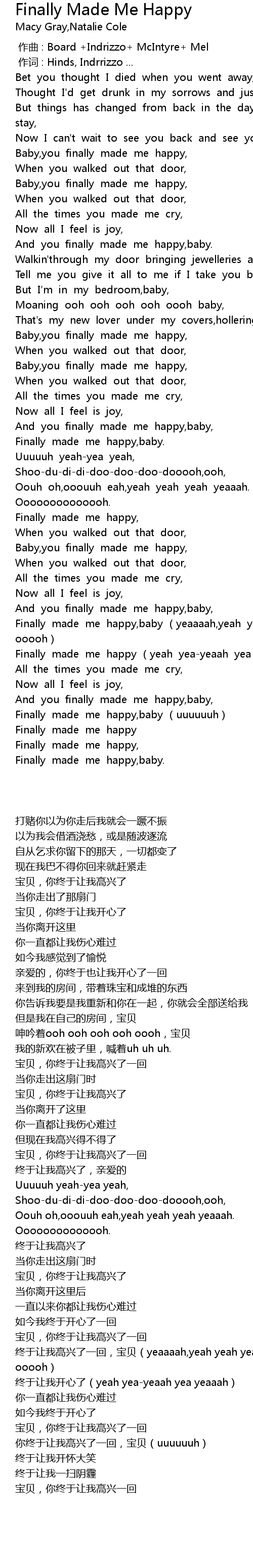 | [02:33.90] | Finally made me happy, baby yeaaaah, yeah yeah yeaaah, ooooh ooooh |