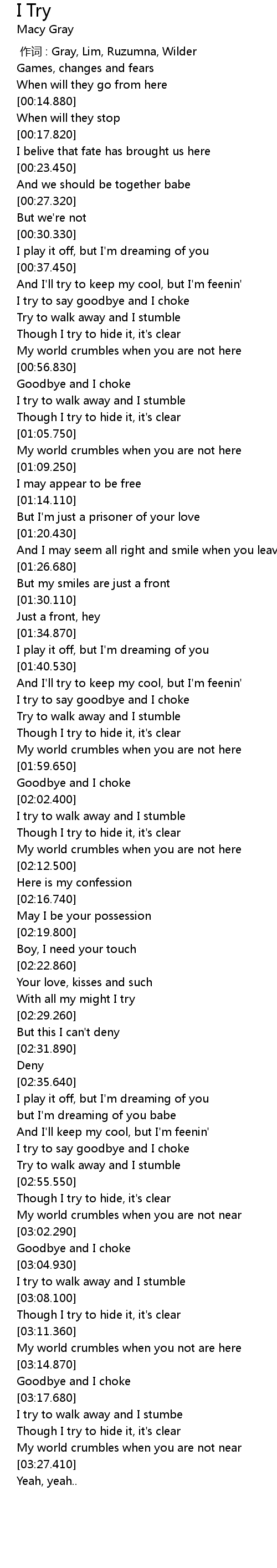 | [00:00.00] | 作词 : Gray, Lim, Ruzumna, Wilder |