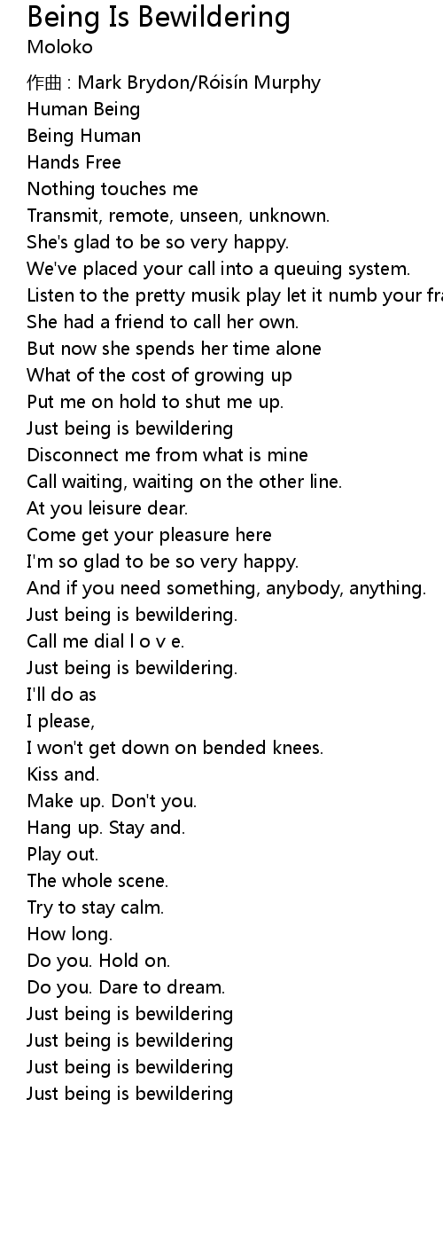 | 歌曲 | Being Is Bewildering |