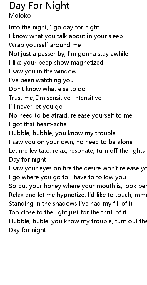 Into the night, I go day for night |