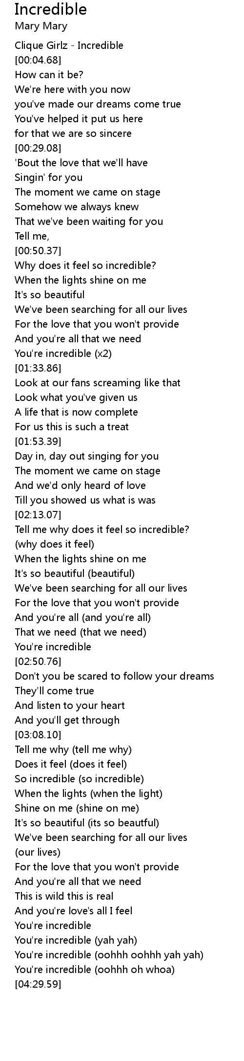 You're incredible (oohhh oohhh yah yah) |