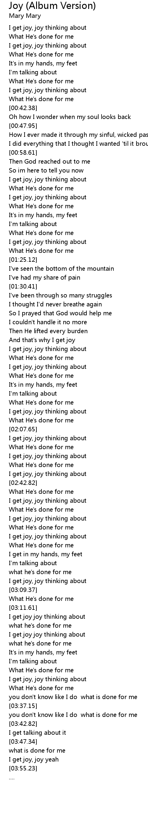 | [03:50.67] | I get joy, joy yeah |