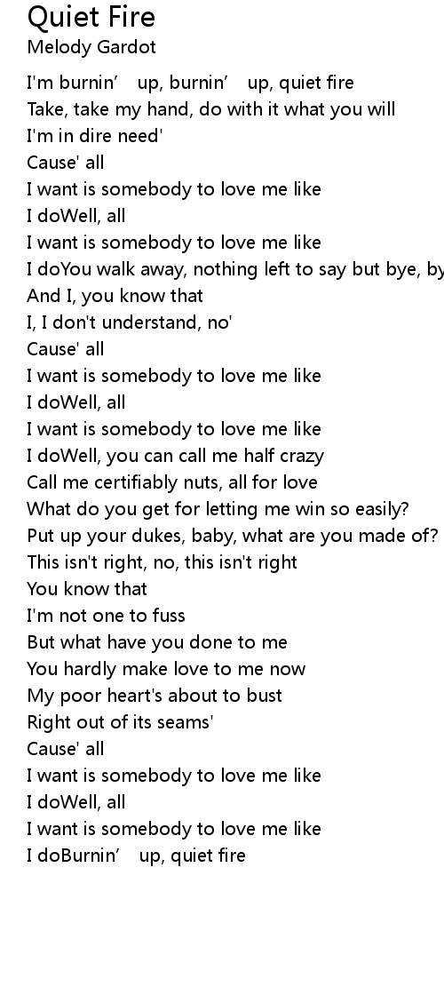 | I' m burnin' up, burnin' up, quiet fire | |