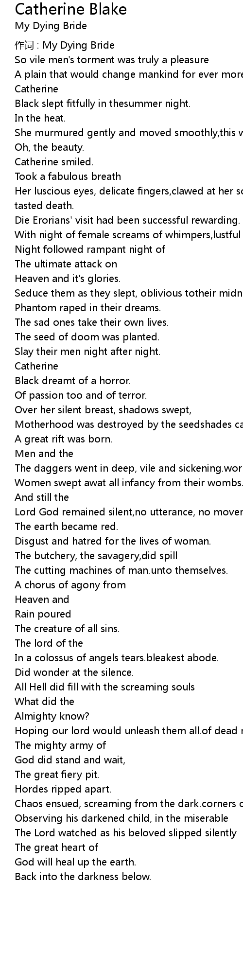 | 作词 : My Dying Bride | |