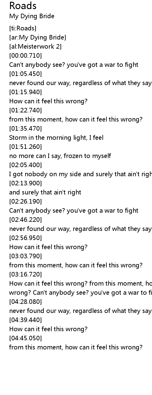 How can it feel this wrong? from this moment, how can it feel this wrong? Can't anybody see? you've got a war to fight |