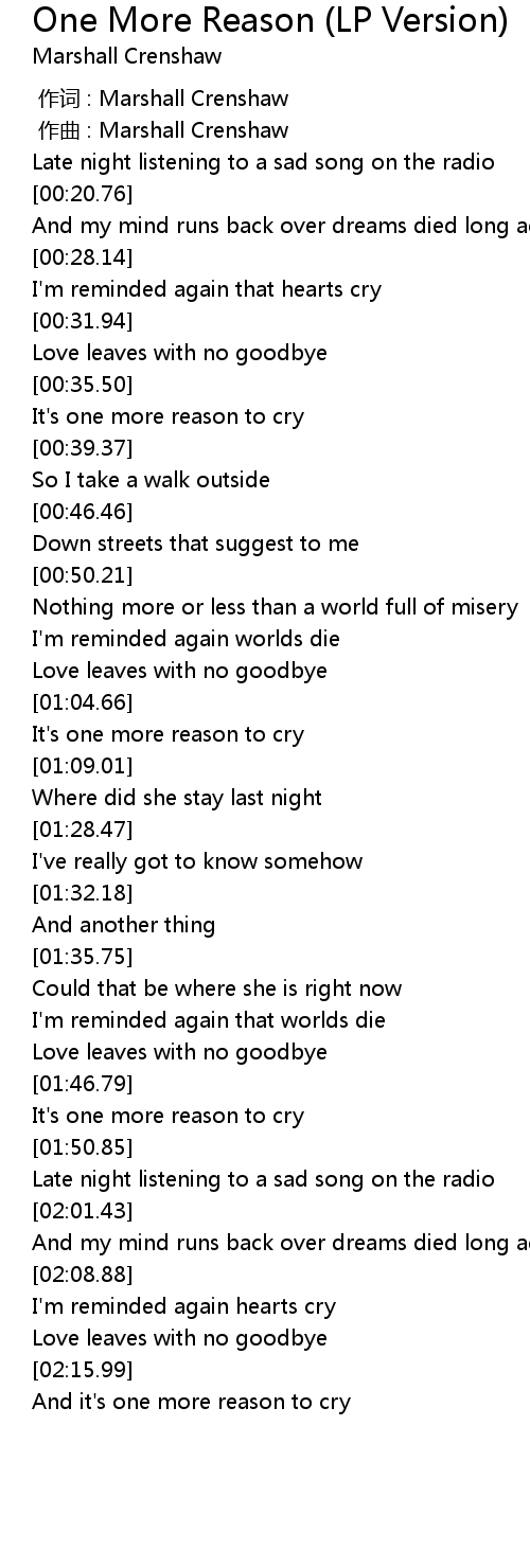 | [00:01.000] | zuo qu : Marshall Crenshaw |