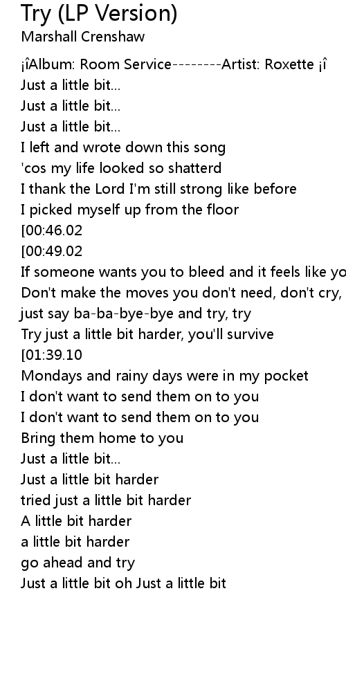 | [02:28.88][01:39.10] | Try just a little bit harder, go ahead and try |