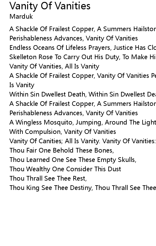 | Vanity Of Vanities, All Is Vanity | |
