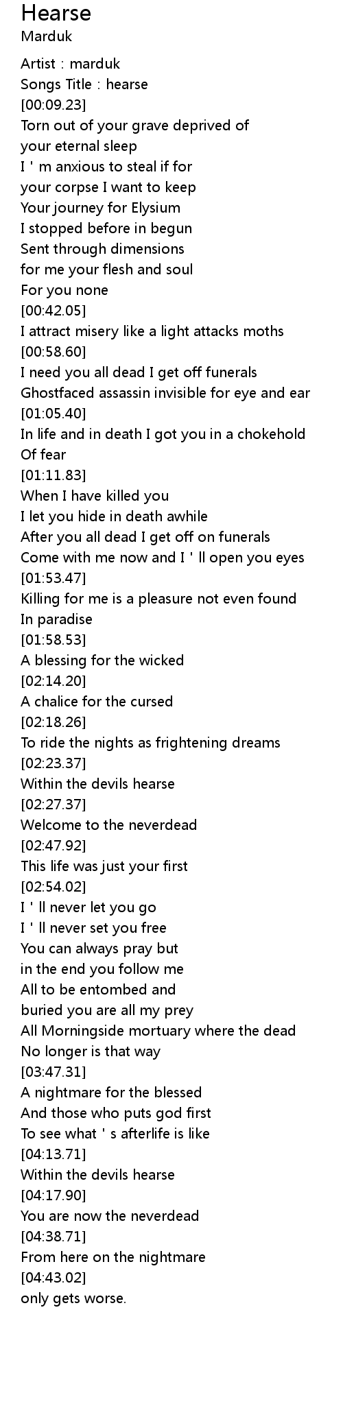 | [02:24.44] | Within the devils hearse |