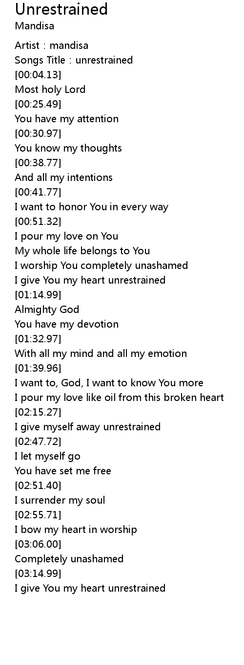 | [01:52.02] | I pour my love like oil from this broken heart |