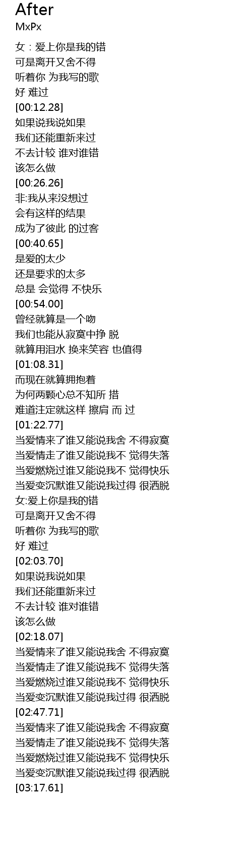 | [00:35.60] | 成为了彼此 的过客 |