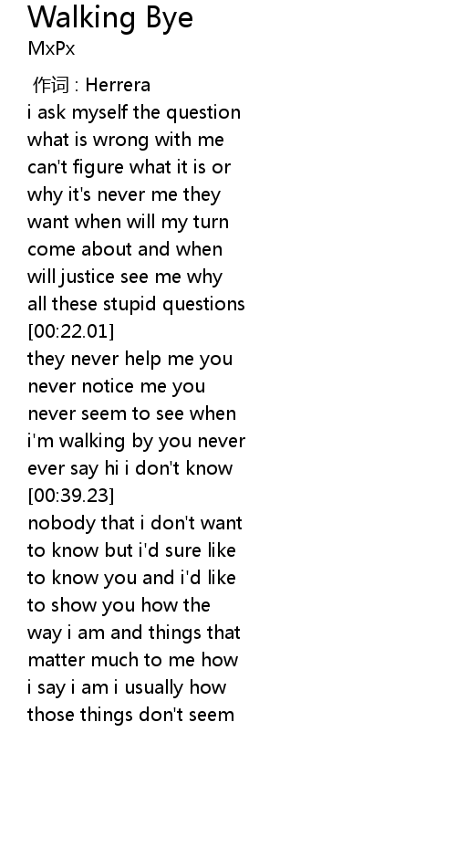 | [00:34.30] | i'm walking by you never |