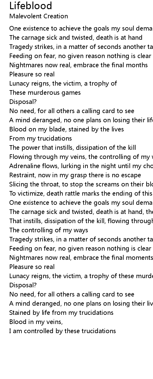 The carnage sick and twisted, death is at hand, the power |