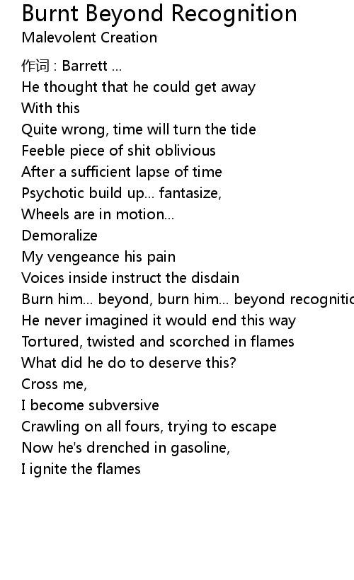 | 歌曲 | Burnt Beyond Recognition |