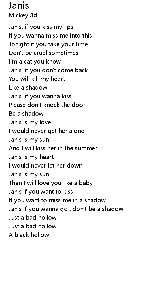 Janis, if you kiss my lips |