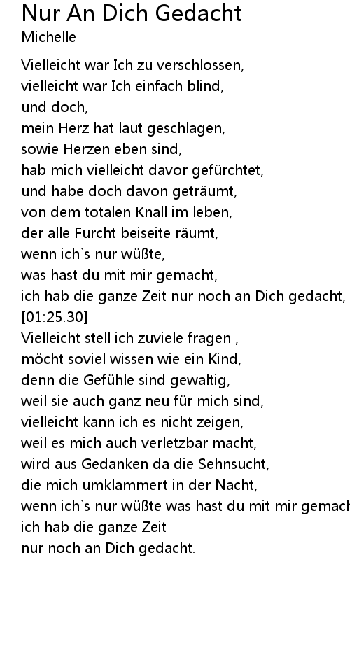 | [01:15.94] | ich hab die ganze Zeit nur noch an Dich gedacht, |