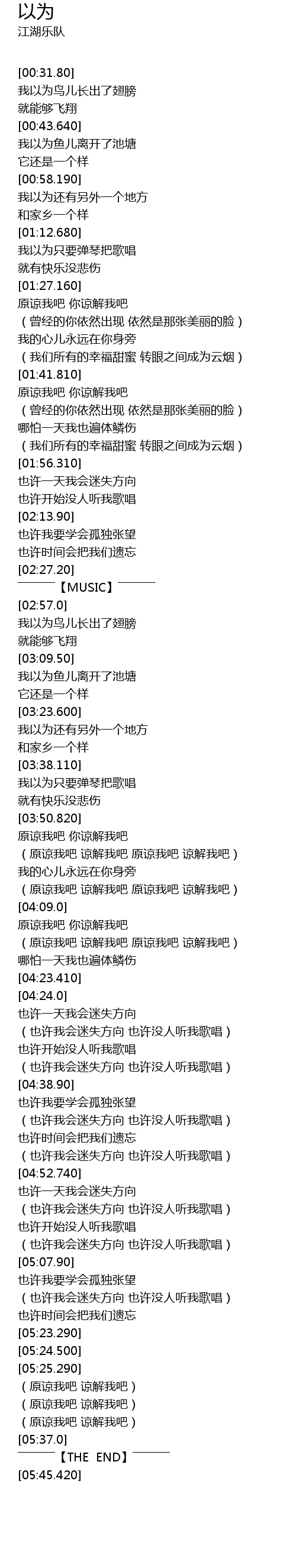 | [03:40.890] | wǒ yǐ wéi zhǐ yào tán qín bǎ gē chàng |