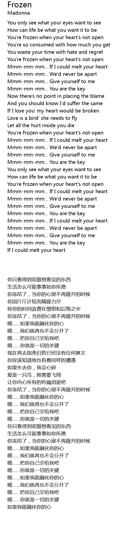 | [01:01.0] | You' re frozen when your heart' s not open |