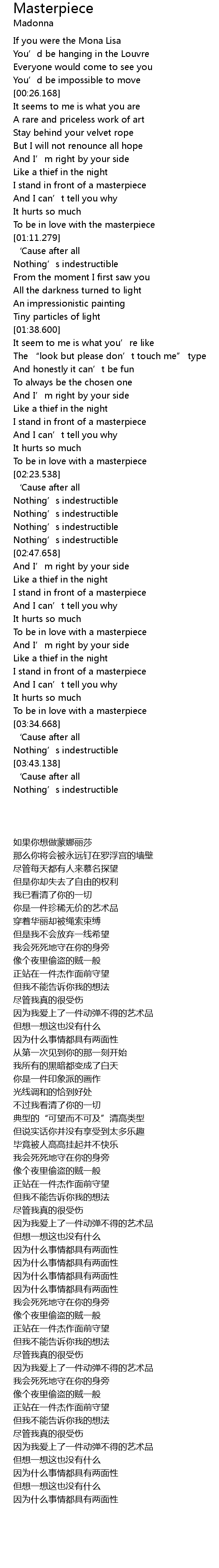 | [00:34.690] | 你是一件珍稀无价的艺术品 |