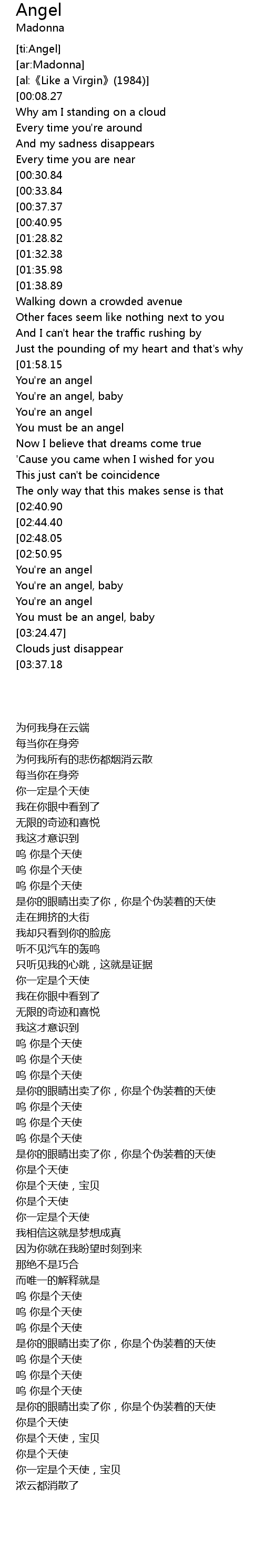 | [03:20.47] | 你一定是个天使,宝贝 |