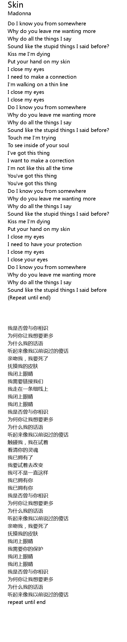Put your hand on my skin |