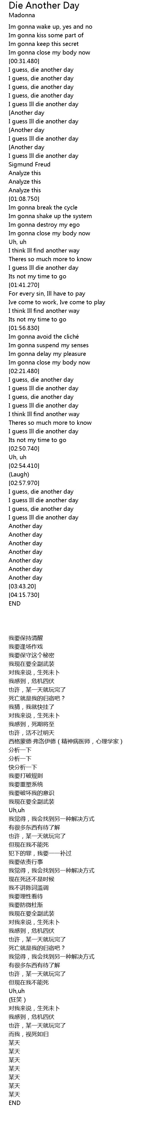 | [00:54.490] | I guess Ill die another day |