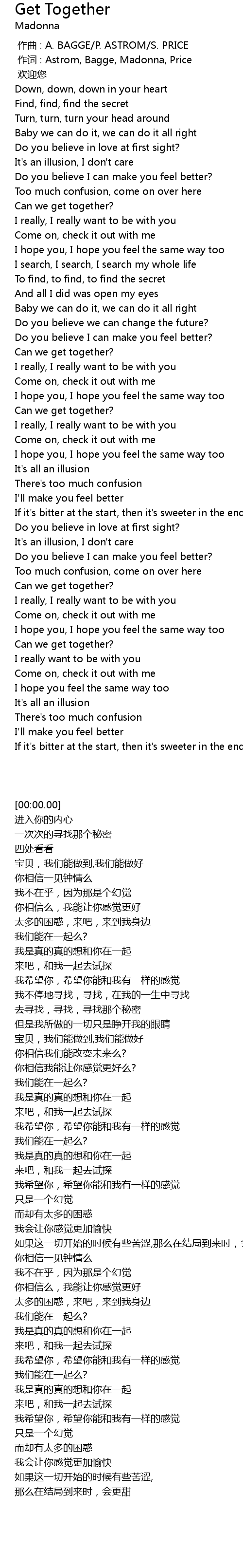 | [00:00.00] | zuò cí : Astrom, Bagge, Madonna, Price |