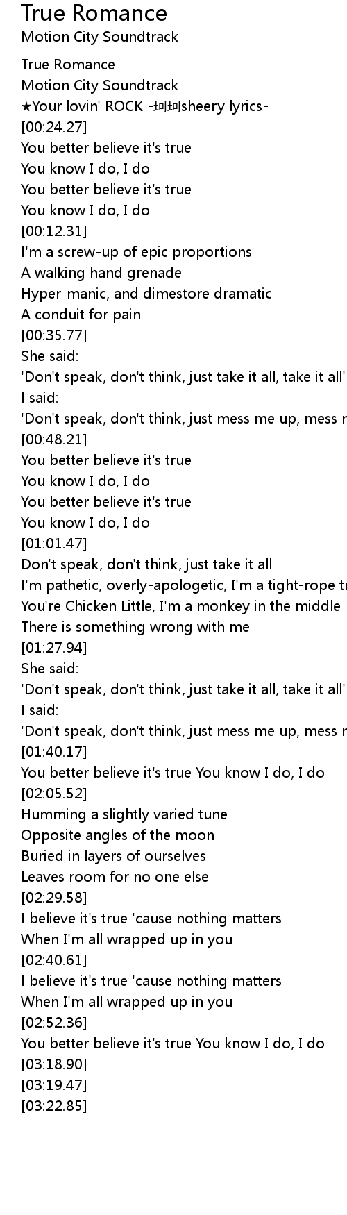 | [00:37.13] | 'Don't speak, don't think, just take it all, take it all' |
