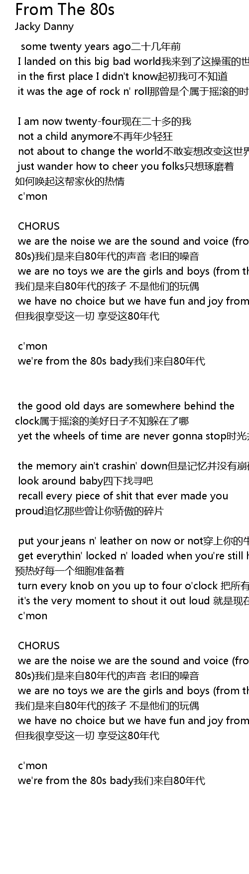 | we have no choice but we have fun and joy from the 80s 这不是我的选择 但我很享受这一切 享受这80年代 | |
