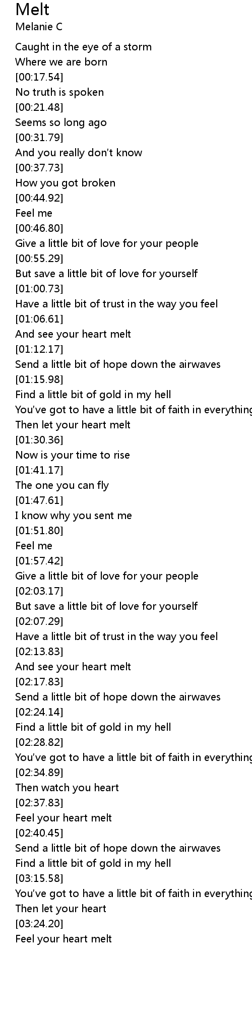 | [03:24.83] | Feel your heart melt |