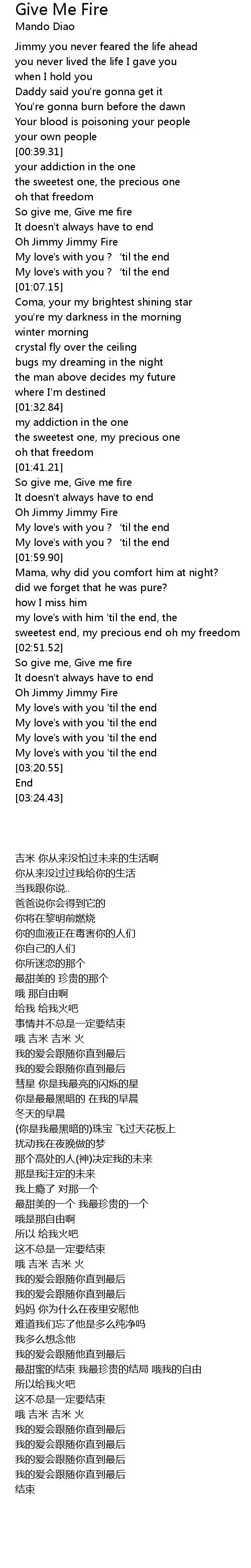 | [00:55.59] | Oh Jimmy Jimmy Fire |