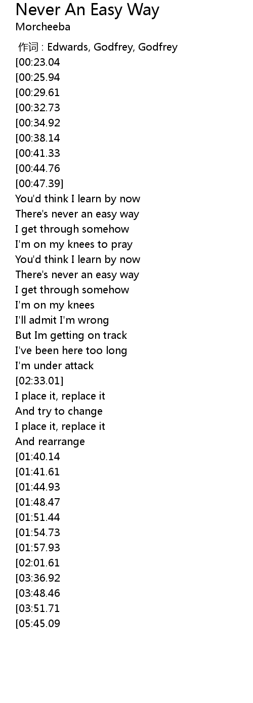 | [03:16.88][01:44.93] | There' s never an easy way |