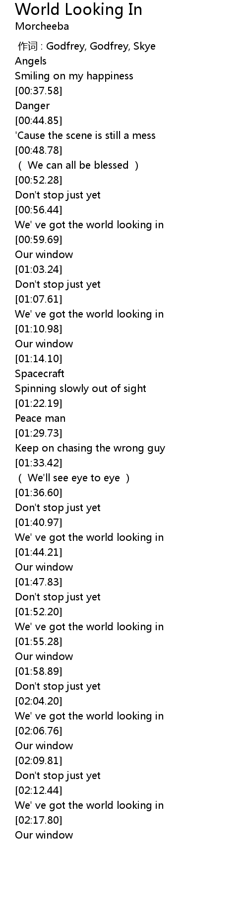 | [00:57.12] | We' ve got the world looking in |