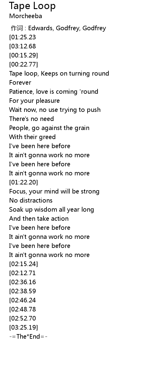 | [00:25.90] | Tape loop, Keeps on turning round |