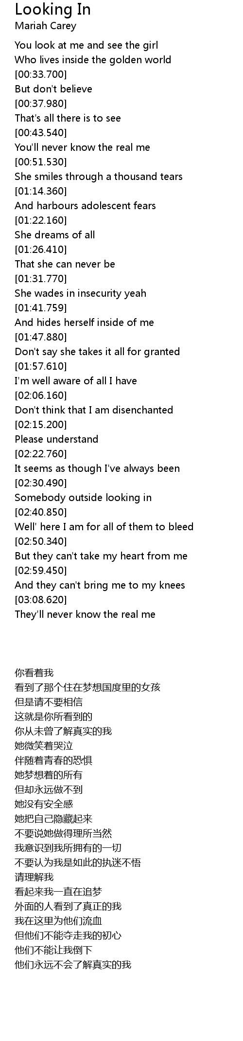 | [02:32.800] | Somebody outside looking in |