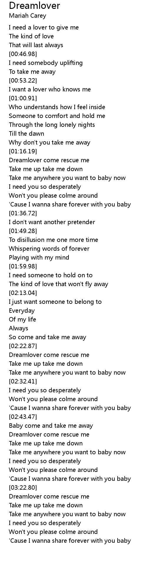 [02:23.53] Dreamlover come rescue me