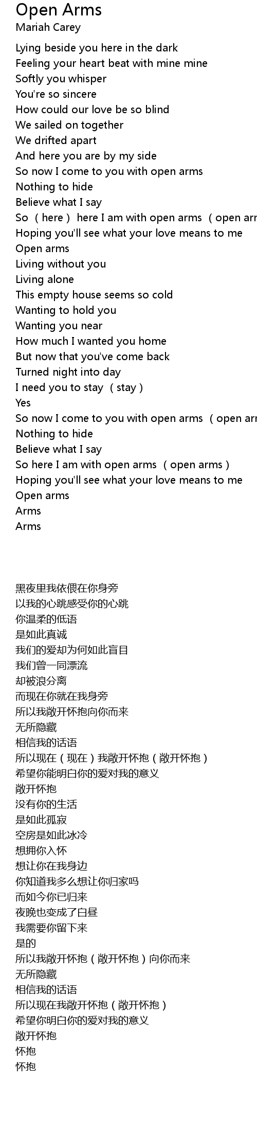 | [01:12.750] | So (here) here I am with open arms (open arms) |