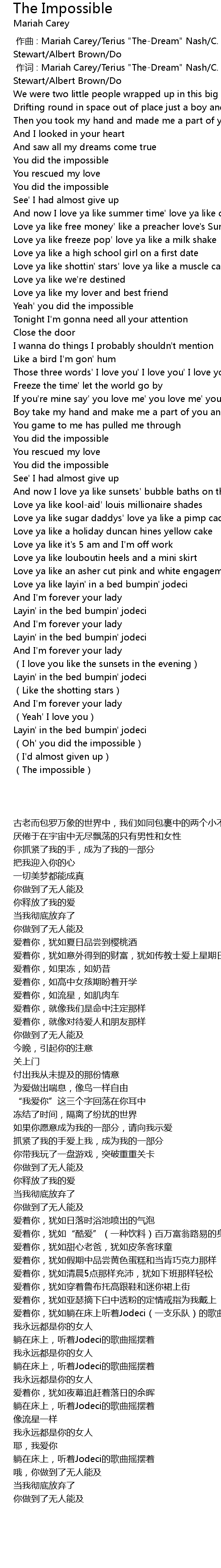 | 歌曲 | The Impossible |