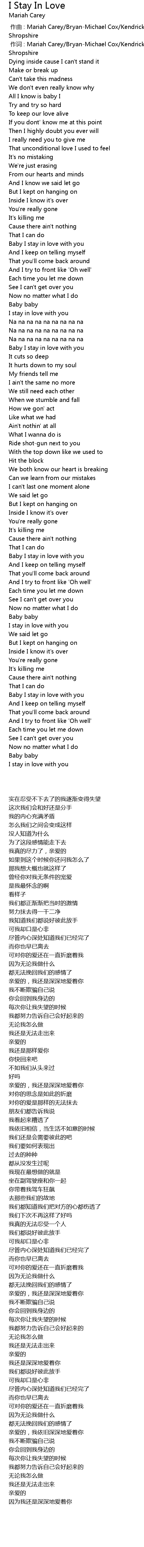 | [00:01.00] | 作词 : Mariah Carey/Bryan-Michael Cox/Kendrick Dean/Adonis Shropshire |