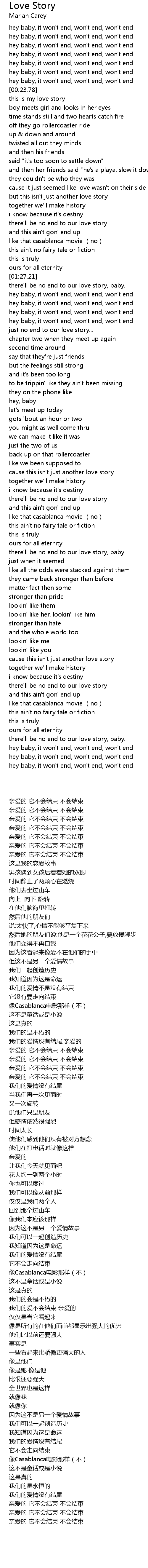 | [00:19.35] | 亲爱的 它不会结束 不会结束 |