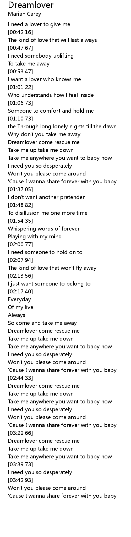 [03:30.91] Dreamlover come rescue me