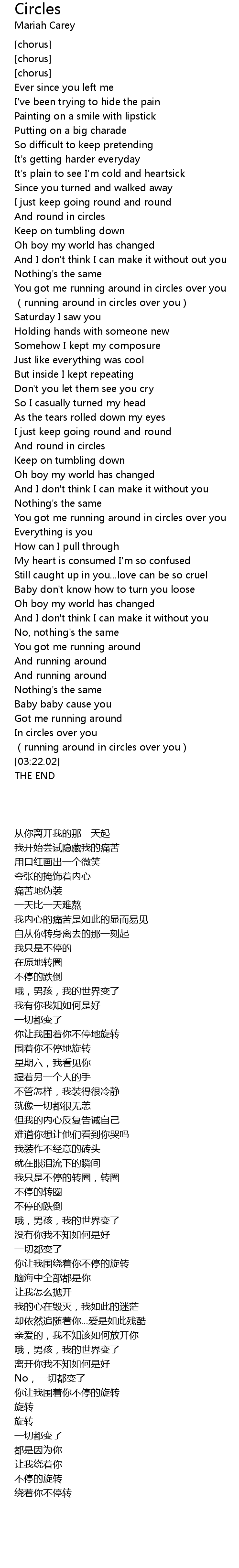 | [01:31.38] | 我只是不停的转圈,转圈 |