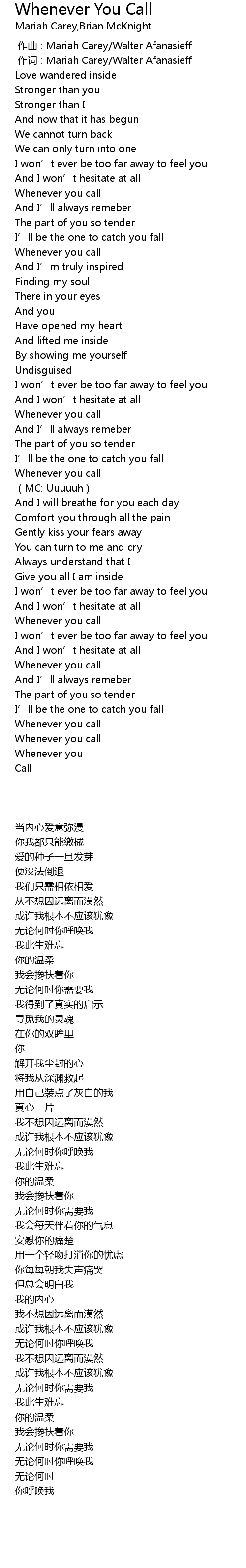 | 歌曲 | Whenever You Call |