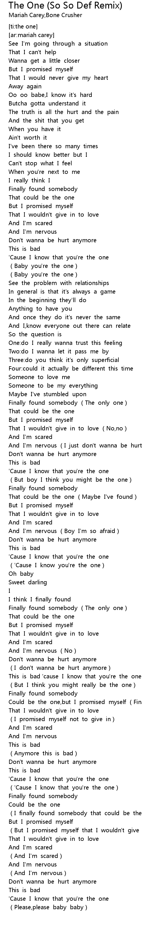 | [01:19.62] | (Baby you're the one) |