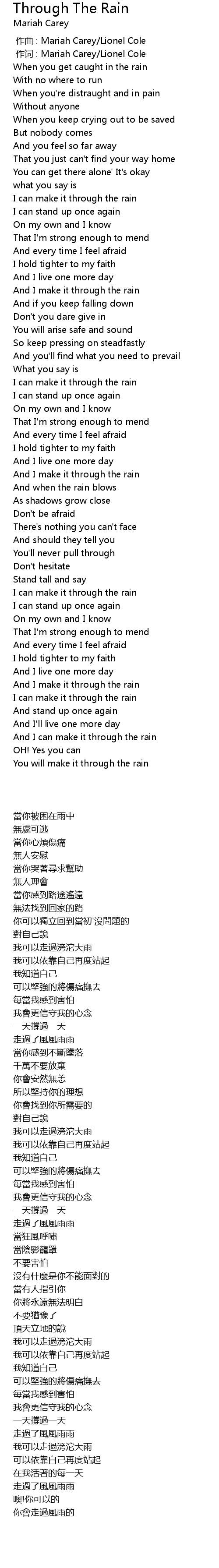 | [00:01.00] | 作词 : Mariah Carey/Lionel Cole |