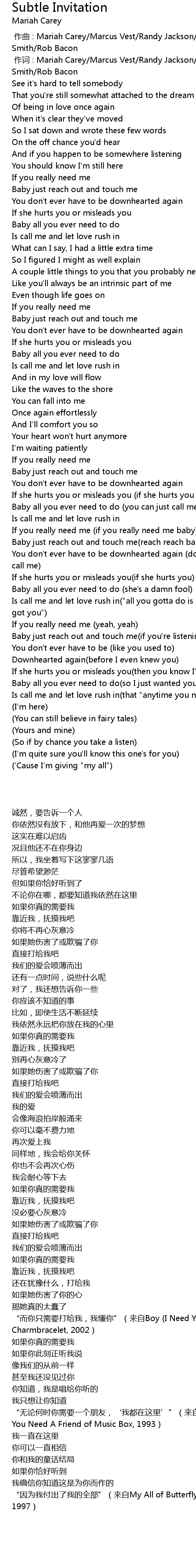| [00:01.00] | 作词 : Mariah Carey/Marcus Vest/Randy Jackson/Kenneth Crouch/Lloyd Smith/Rob Bacon |