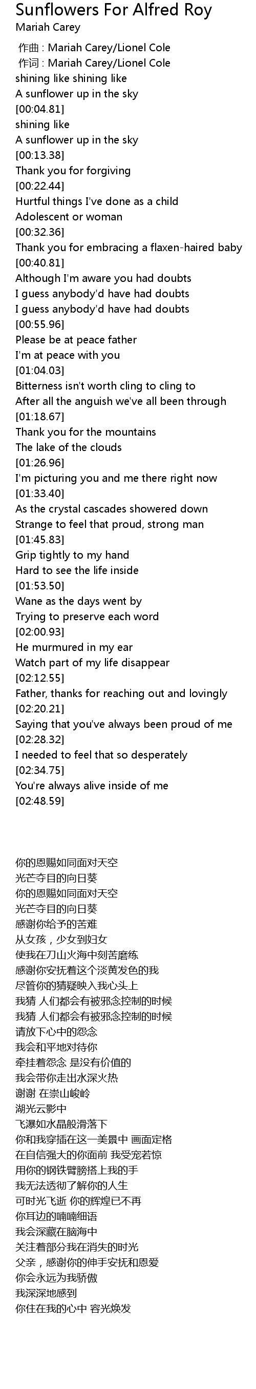 | 歌曲 | Sunflowers For Alfred Roy |