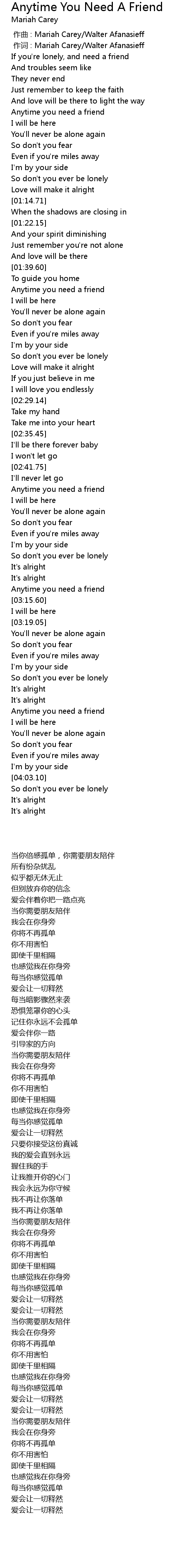 | [00:01.00] | zuò cí : Mariah Carey Walter Afanasieff |