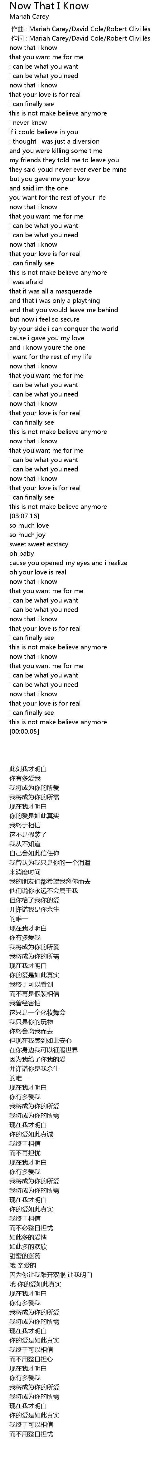 | [00:00.01] | zuo ci : Mariah Carey David Cole Robert Cliville s |