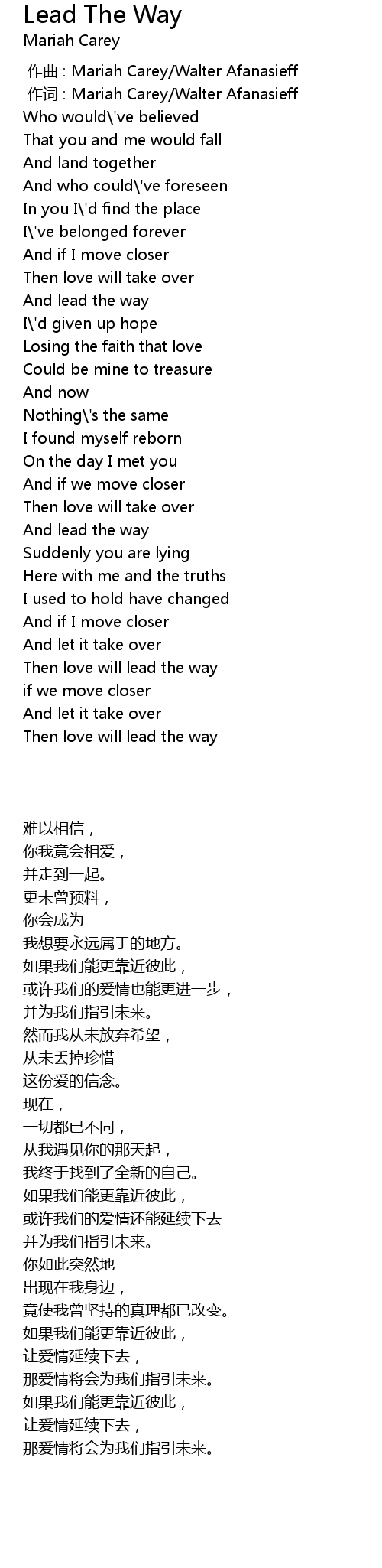 | [00:01.00] | zuò cí : Mariah Carey Walter Afanasieff |